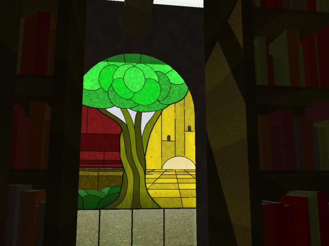 Library From The Top. The stained glass tree of life window is an independent image I made around the same time.