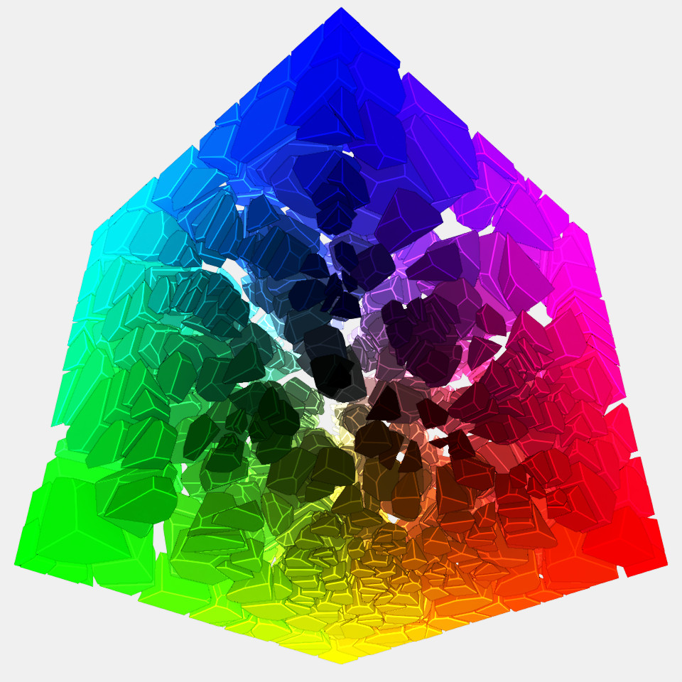 The XKCD rgb.txt named color space converted into voronoi volumes.