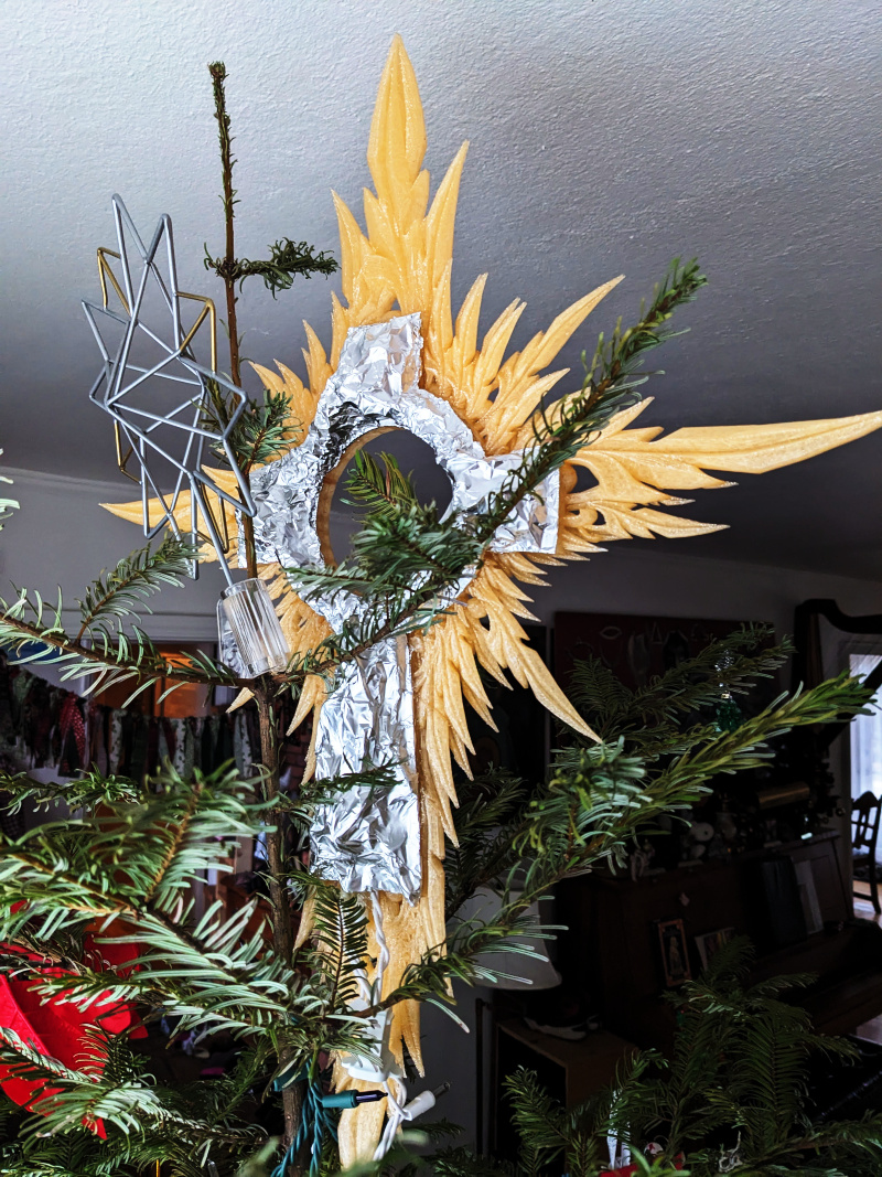 The foil means that when the lights are off and the star is backlit, the Celtic Cross shape shows up in shadow.
